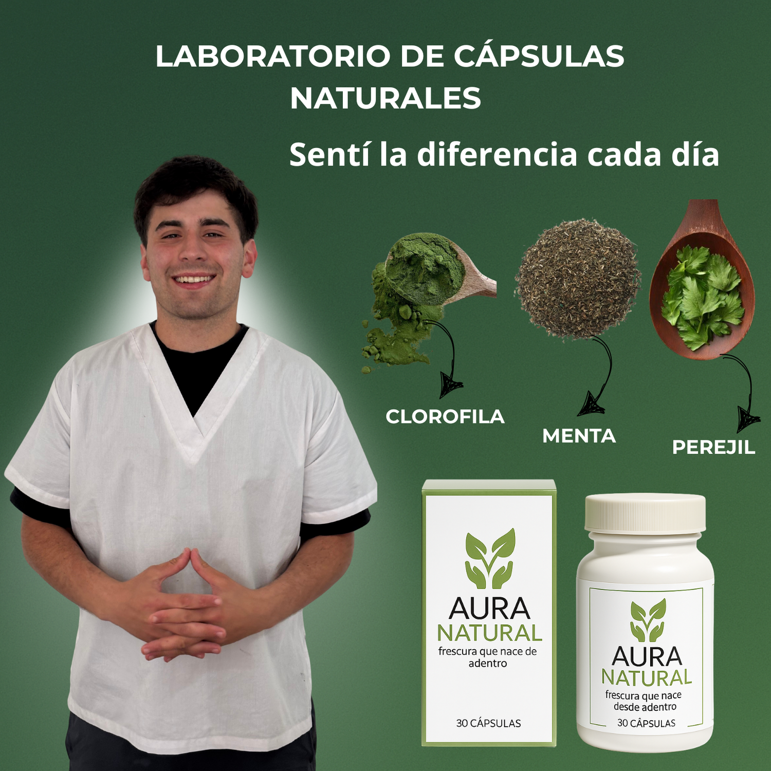 Así nació AURA NATURAL, un proyecto creado con amor, a base de clorofila, menta y perejil, para que puedas recuperar tu confianza, cuidar tu cuerpo y sentirte bien con vos mismo todos los días. 🌿💚